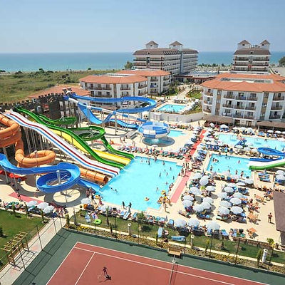 Aquapark "Eftalia Island" is a magical place where you can leave everyday worries and plunge into the world of unforgettable sensations! Eftalia Island has 14 huge water slides for adults, such as boomerang, black hole, free fall, kamikaze, twister. For children there is a large area with 3 pools, consisting of playgrounds and water slides, such as tropical towers, an octopus, a pirate ship rafting. Children's water park is a firework of joyful emotions! Take the family to the water park Eftalia Island and rest from everything and everyone! Pools, kamikaze slides, inflatable pools for children and much more - all in one place. Aquapark is located right next to the sea, so if you want you can swim directly in the sea. And all this with the package all inclusive, i.e. food and drink are not restricted.